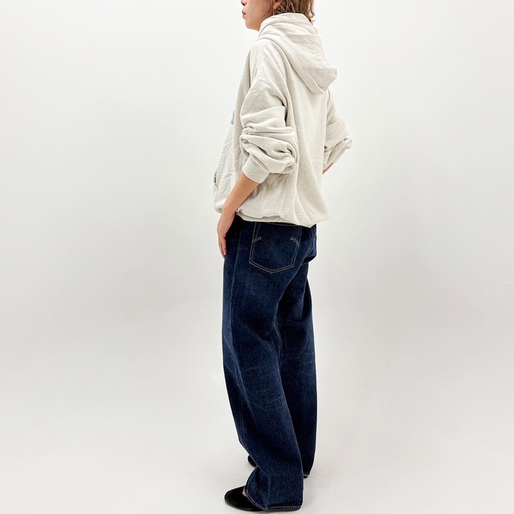 REMI RELIEF's SP processing replicates this natural principle, using traditional direct dyes that are then combined with oxygen to fade the dye slowly over a long period of time. While the garment will still be damaged, unlike processes that involve chemicals or bio-based methods that forcibly dissolve the fabric, this natural processing creates the closest appearance to the damage that occurs naturally over time in vintage clothing, making it indistinguishable from real vintage clothing the more you wear it.
