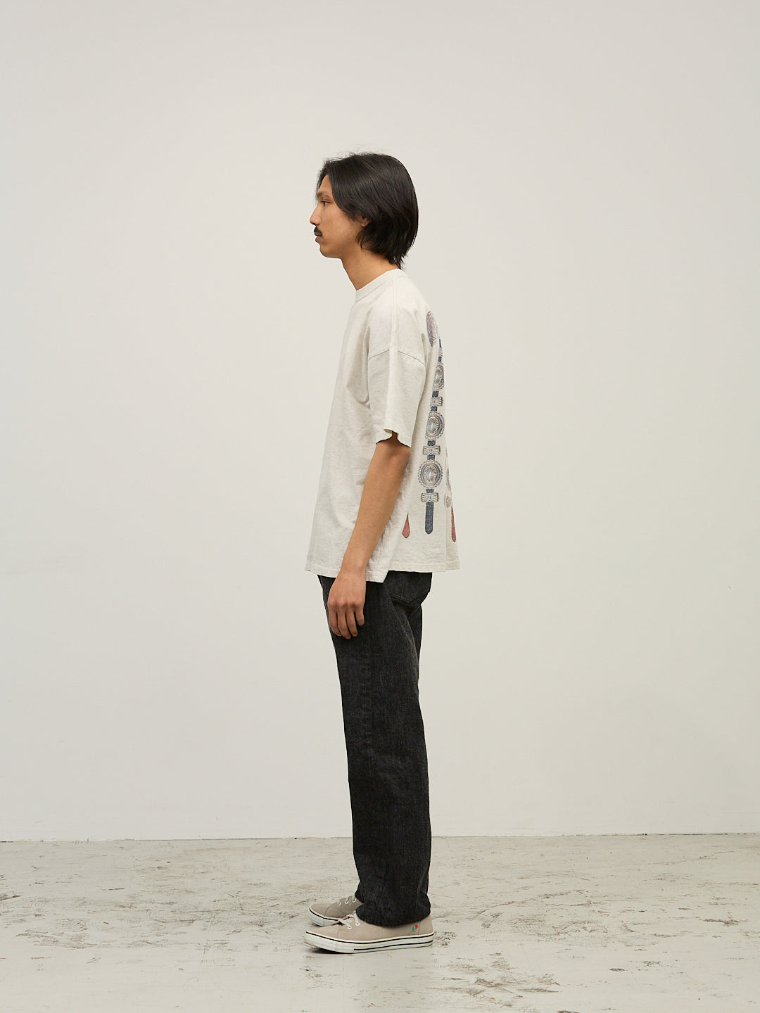 REMI RELIEF's SP processing replicates this natural principle, using traditional direct dyes that are then combined with oxygen to fade the dye slowly over a long period of time. While the garment will still be damaged, unlike processes that involve chemicals or bio-based methods that forcibly dissolve the fabric, this natural processing creates the closest appearance to the damage that occurs naturally over time in vintage clothing, making it indistinguishable from real vintage clothing the more you wear it.