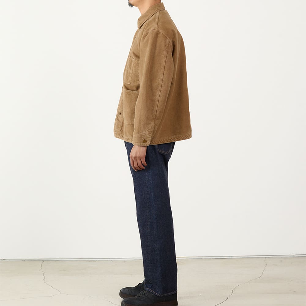 高密度に織り上げたモールスキン特有のハリと厚みがありながら、着込むほどに柔らかく馴染む風合いが魅力です。