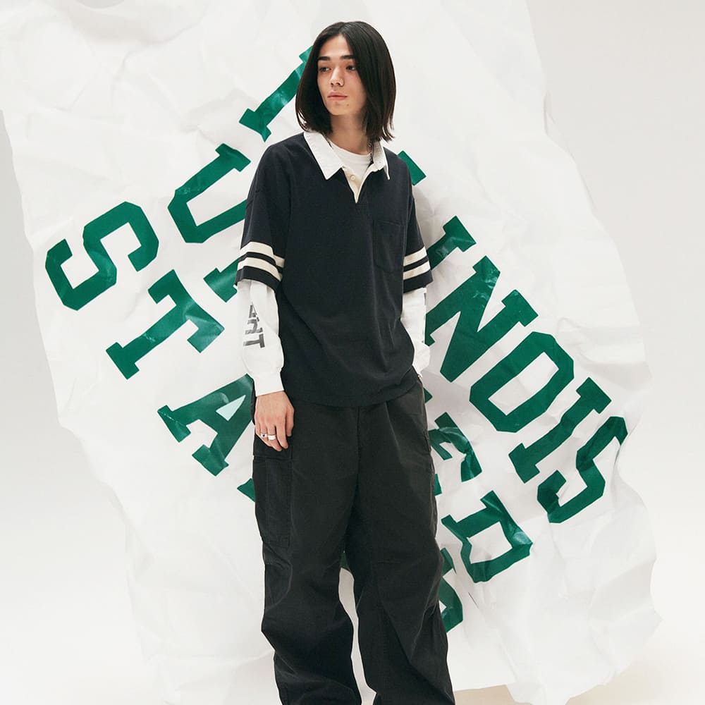 헌 옷과 같은 감촉을 재현하기 위해, 제품 후에 세탁과 가공을 실시해, 프린트에는 크래킹(균열)을 더해, 오랜 세월 입어 온 것 같은 맛 깊은 표정으로 완성하고 있습니다.