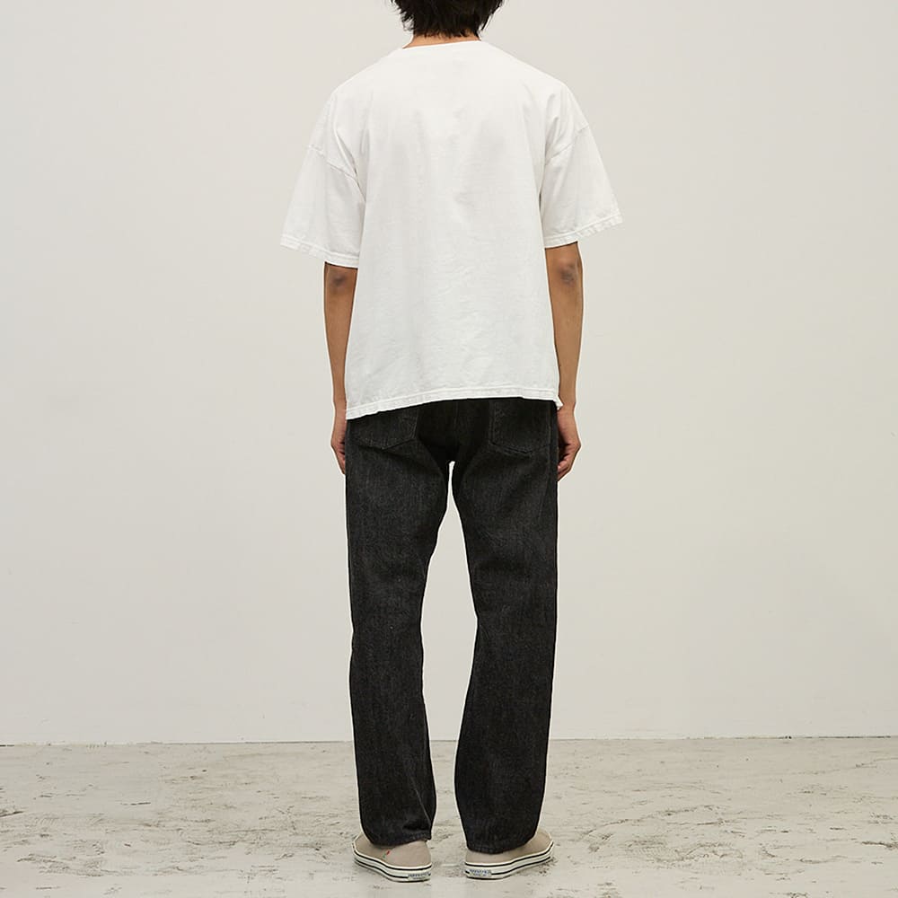 REMI RELIEFのSP加工はこの自然の原理を再現して、昔ながらの直接染料を使い酸素と結合させて、ゆっくりと長時間かけて染料を退色させています。ボディもそれなりのダメージをおいますが、薬品を入れたりバイオによる生地を無理に融かしたりするような加工とは違い、古着本来の経年によるダメージにもっとも近い雰囲気で、着続けていくほどに本当の古着と見分けがつかなくなるよう自然な加工を施しています。