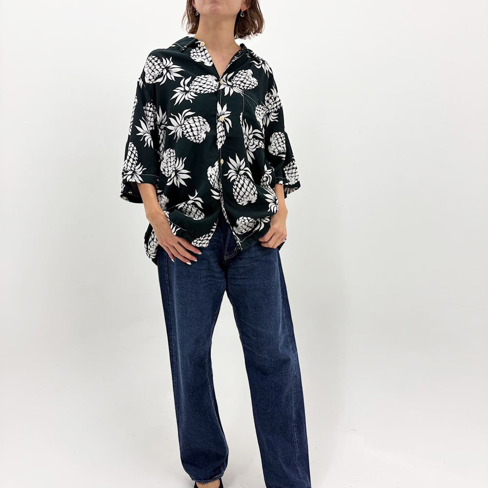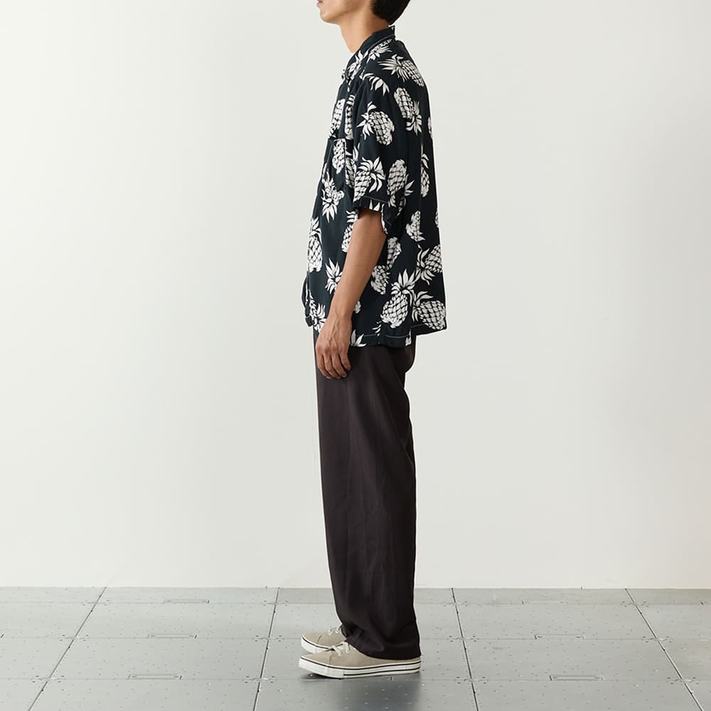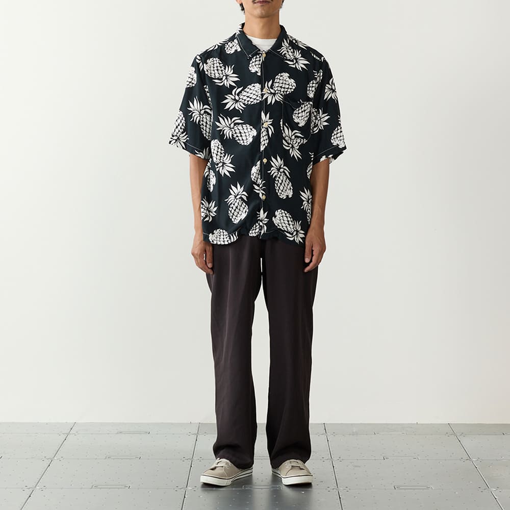 滑らかな落ち感と、肌離れの良さが魅力のレーヨン素材を使用したアロハシャツ。