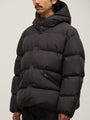 首元まで包み込む高めのフードと、裾のドローコードによって、防寒性とシルエットの調整も可能です。