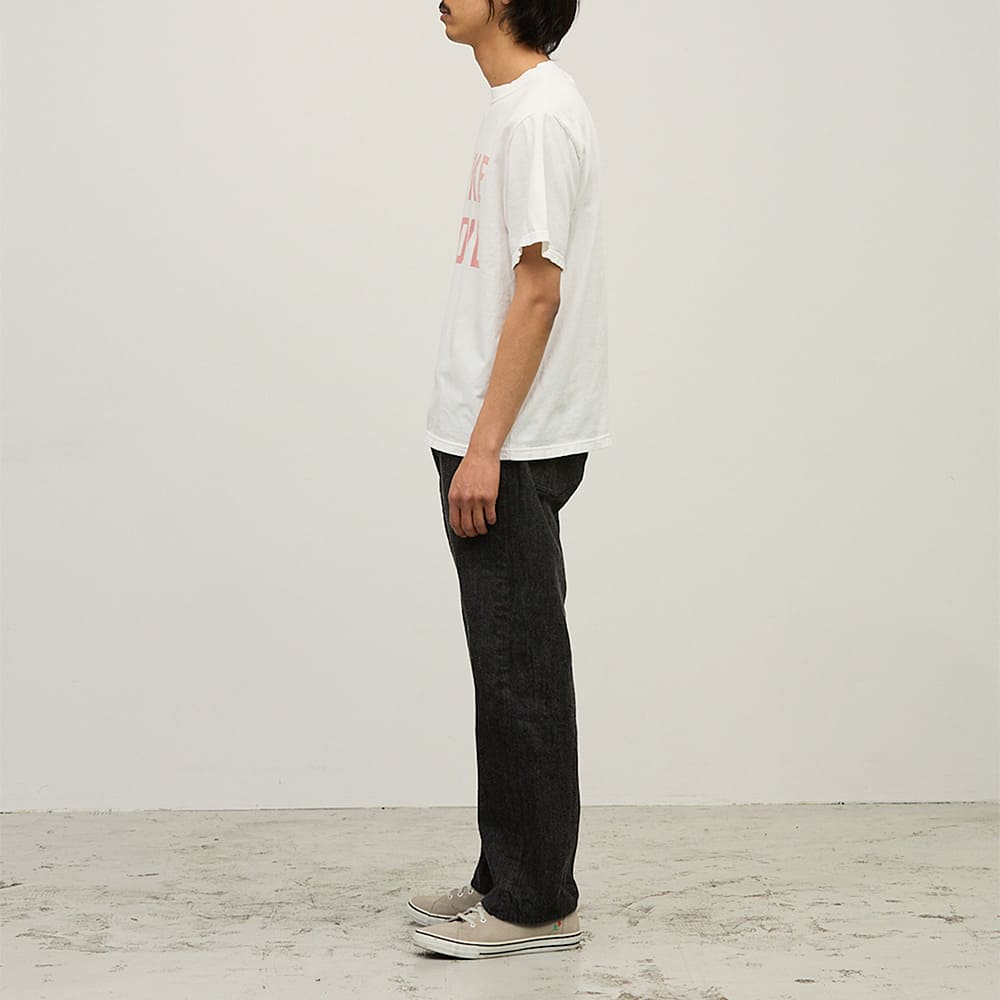 REMI RELIEFのSP加工はこの自然の原理を再現して、昔ながらの直接染料を使い酸素と結合させて、ゆっくりと長時間かけて染料を退色させています。ボディもそれなりのダメージをおいますが、薬品を入れたりバイオによる生地を無理に融かしたりするような加工とは違い、古着本来の経年によるダメージにもっとも近い雰囲気で、着続けていくほどに本当の古着と見分けがつかなくなるよう自然な加工を施しています。