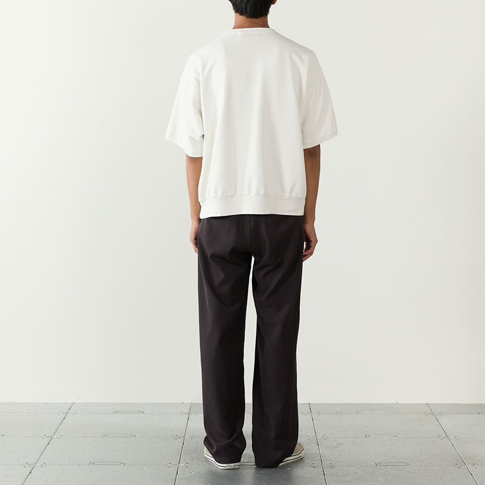 定番のSP加工裏毛クルースウェットよりもゆとりを持たせたサイズ感で、春夏の重ね着やショートパンツとのコーディネートにもマッチするアイテムです。