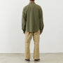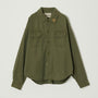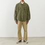 定番のミリタリーシャツをワイドシルエットに変更し、裾デザインはラウンド、更にお腹部分にサイドポケットを装備したモデルです。